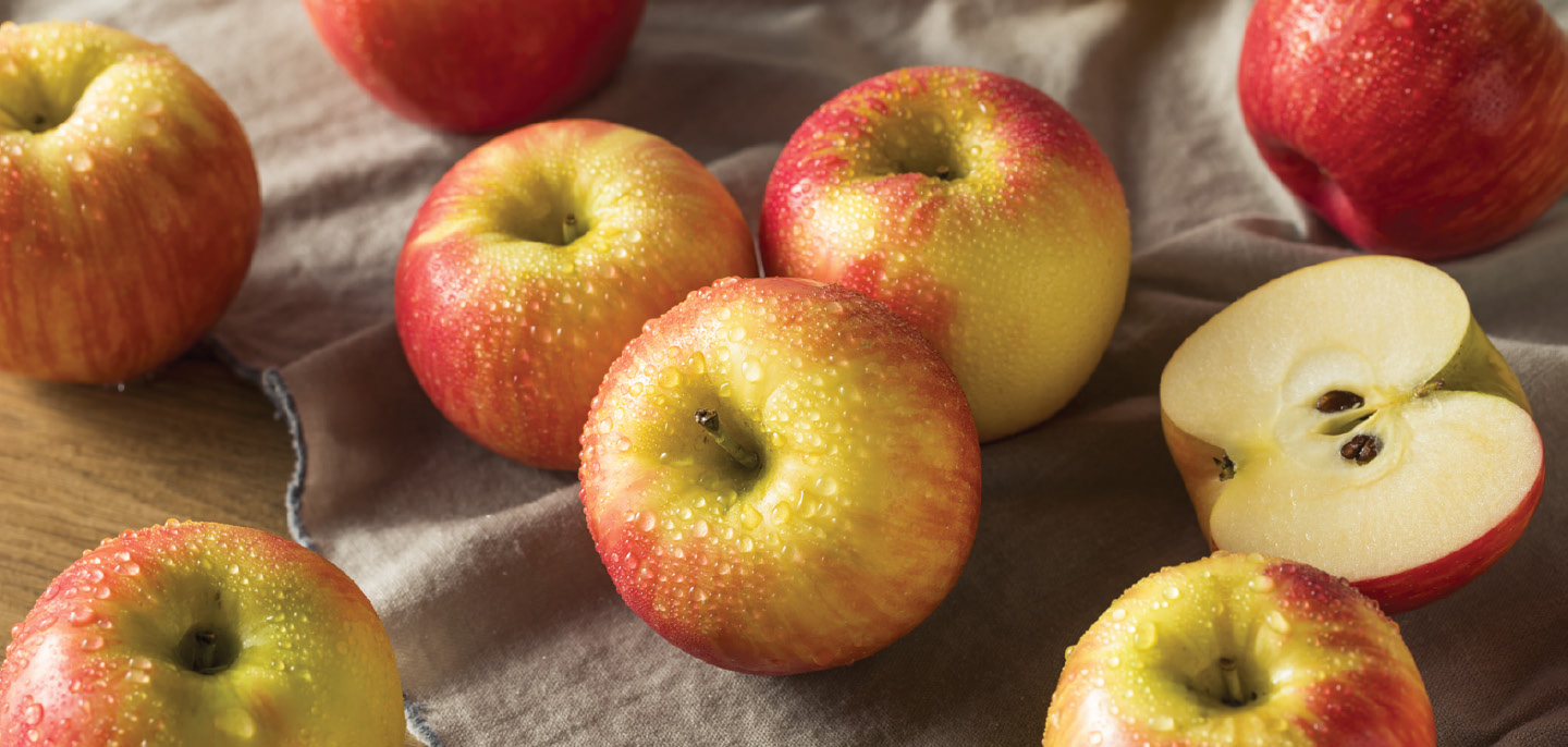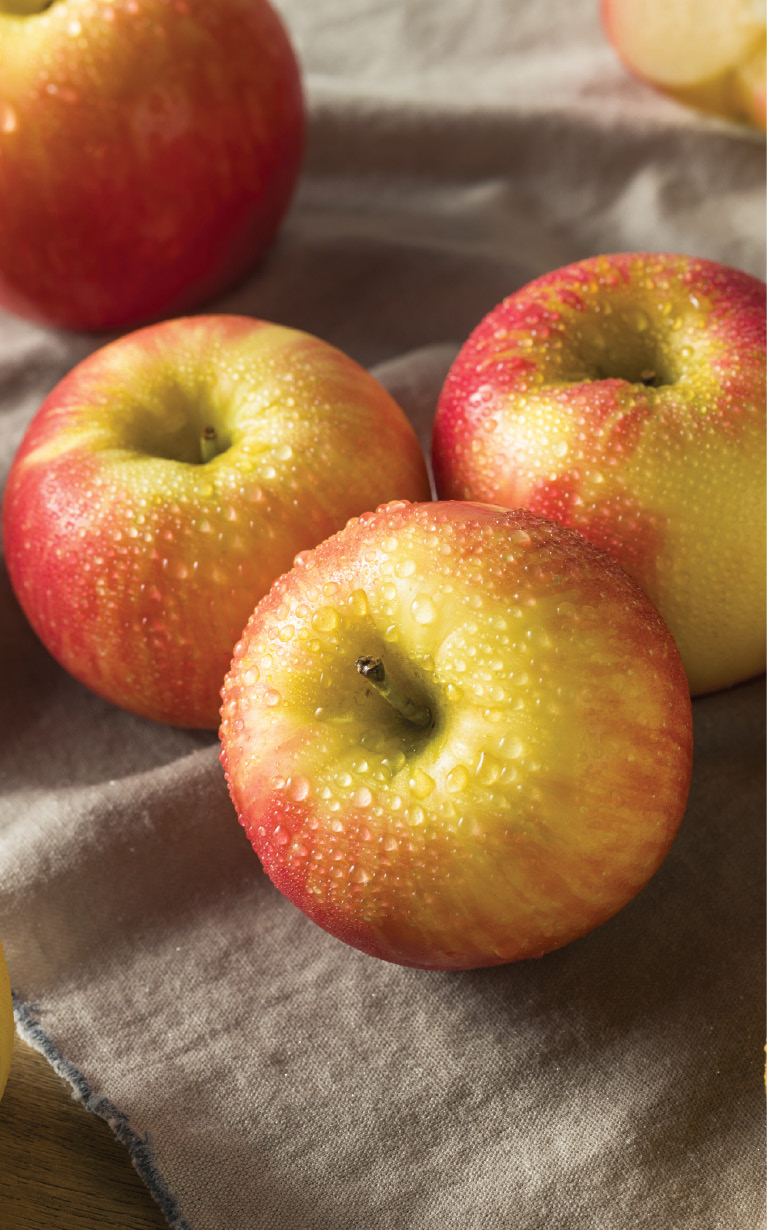 2 Lb. Bag. A cross between a Macoun and a Honeygold, these tree‑fresh Apples are very crisp with a sweet, slightly tart flavor. They’re brilliant red luminosity makes them the perfect addition to any meal.